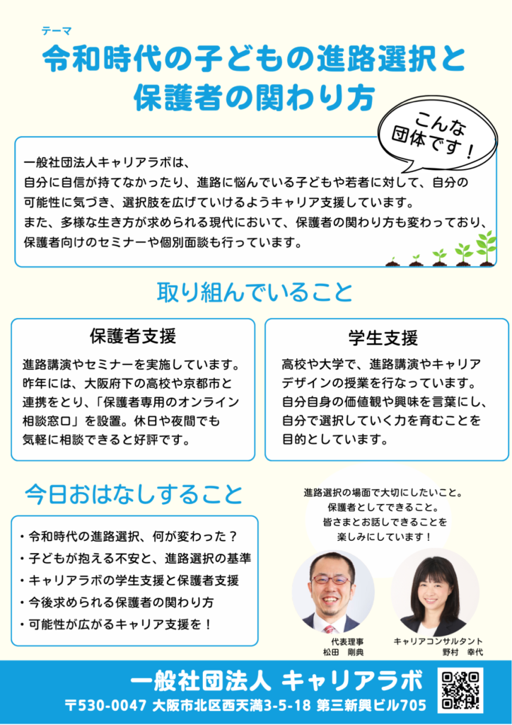 今回の分科会で私がお話しするテーマは、「令和時代の子どもの進路選択と保護者の関わり方」です。